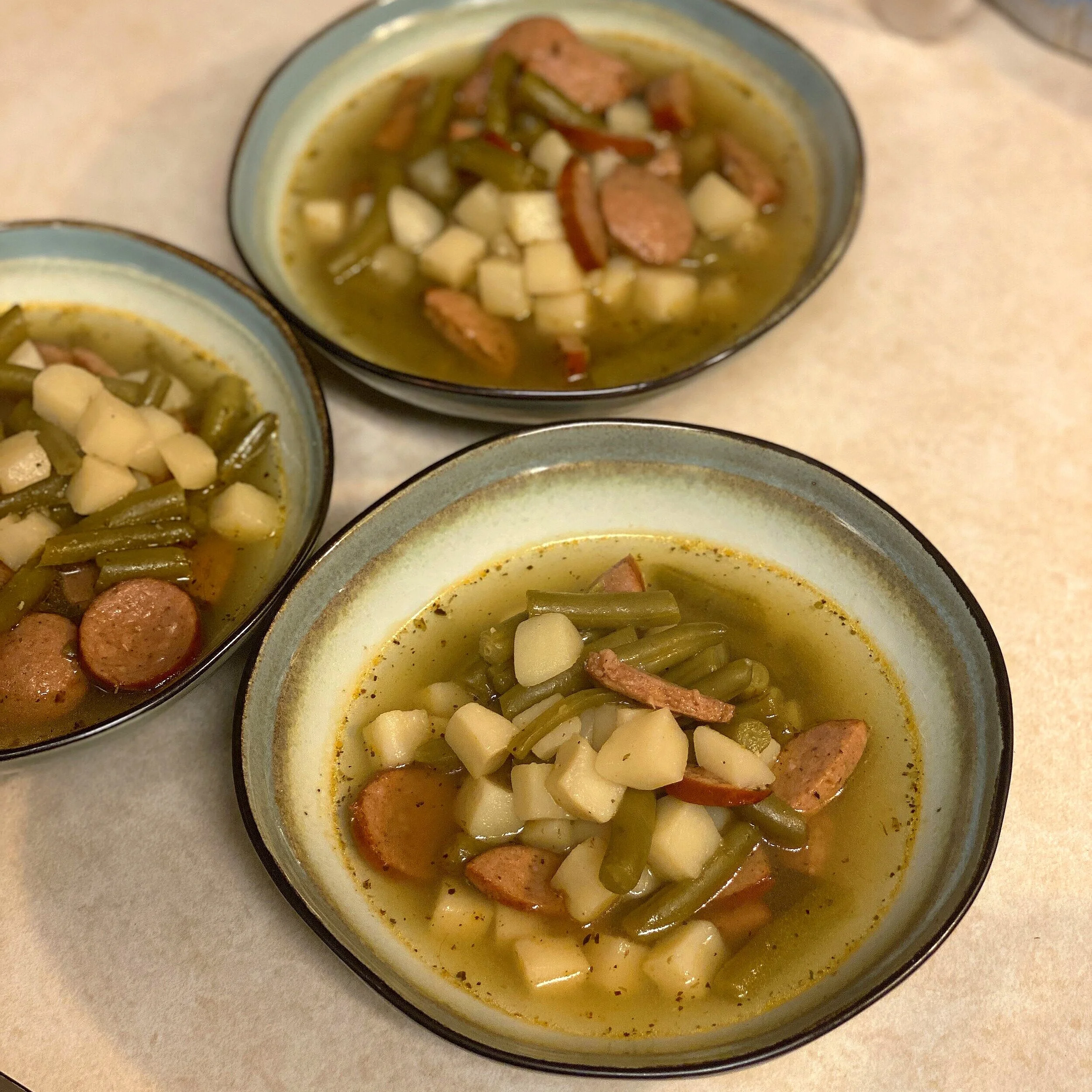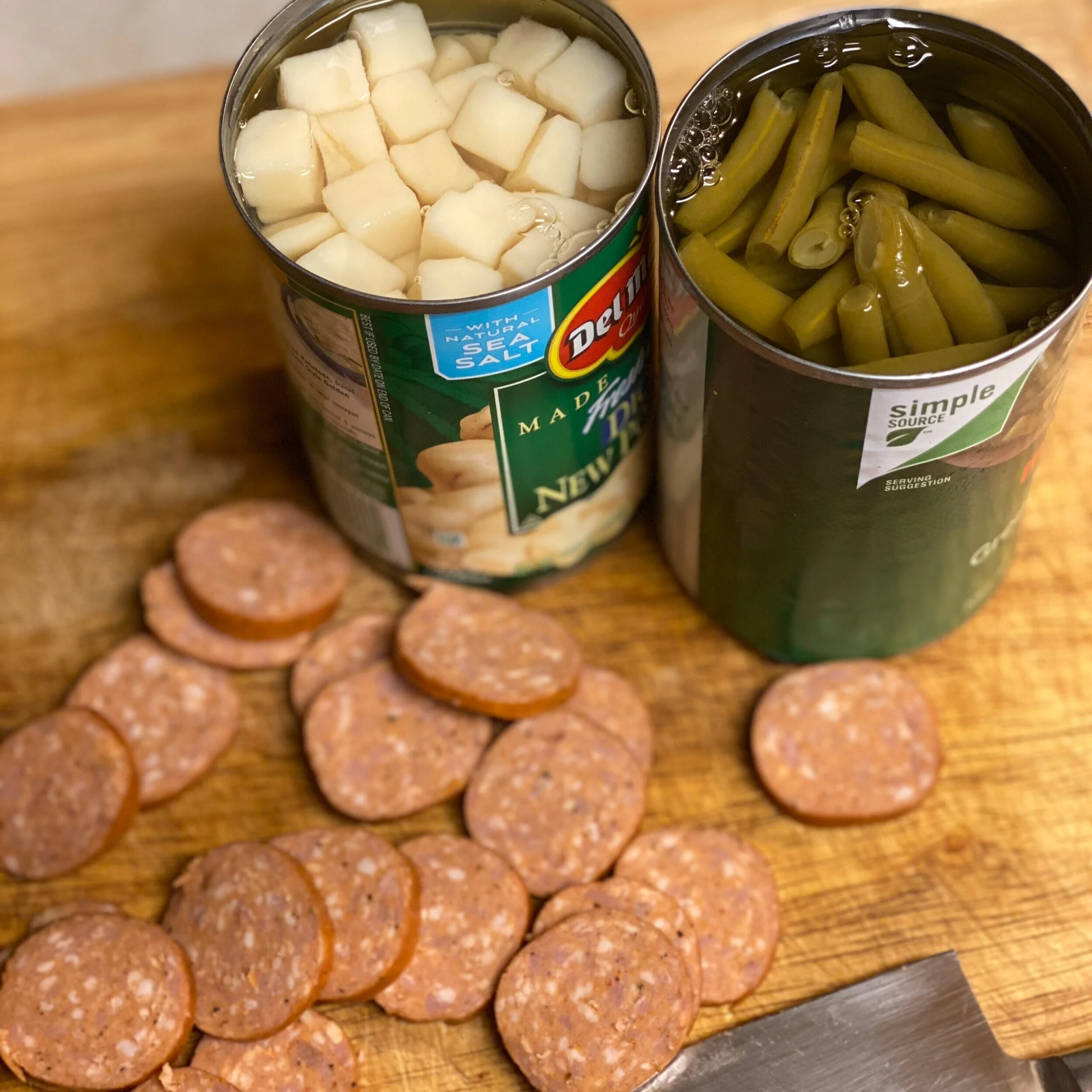 For my Campfire Stew, it has lasted a lifetime and will outlast me because my son also delights in cooking it. The ingredients are purposely simple: a can of cut green beans (not French cut), a can of diced new potatoes, a smoked sausage (sliced), and little Cavender’s Greed Seasoning. Once in the pot, just add water and bring it to a boil. Boiling causes the sausage to release its oils and gives the stew most of its flavor.