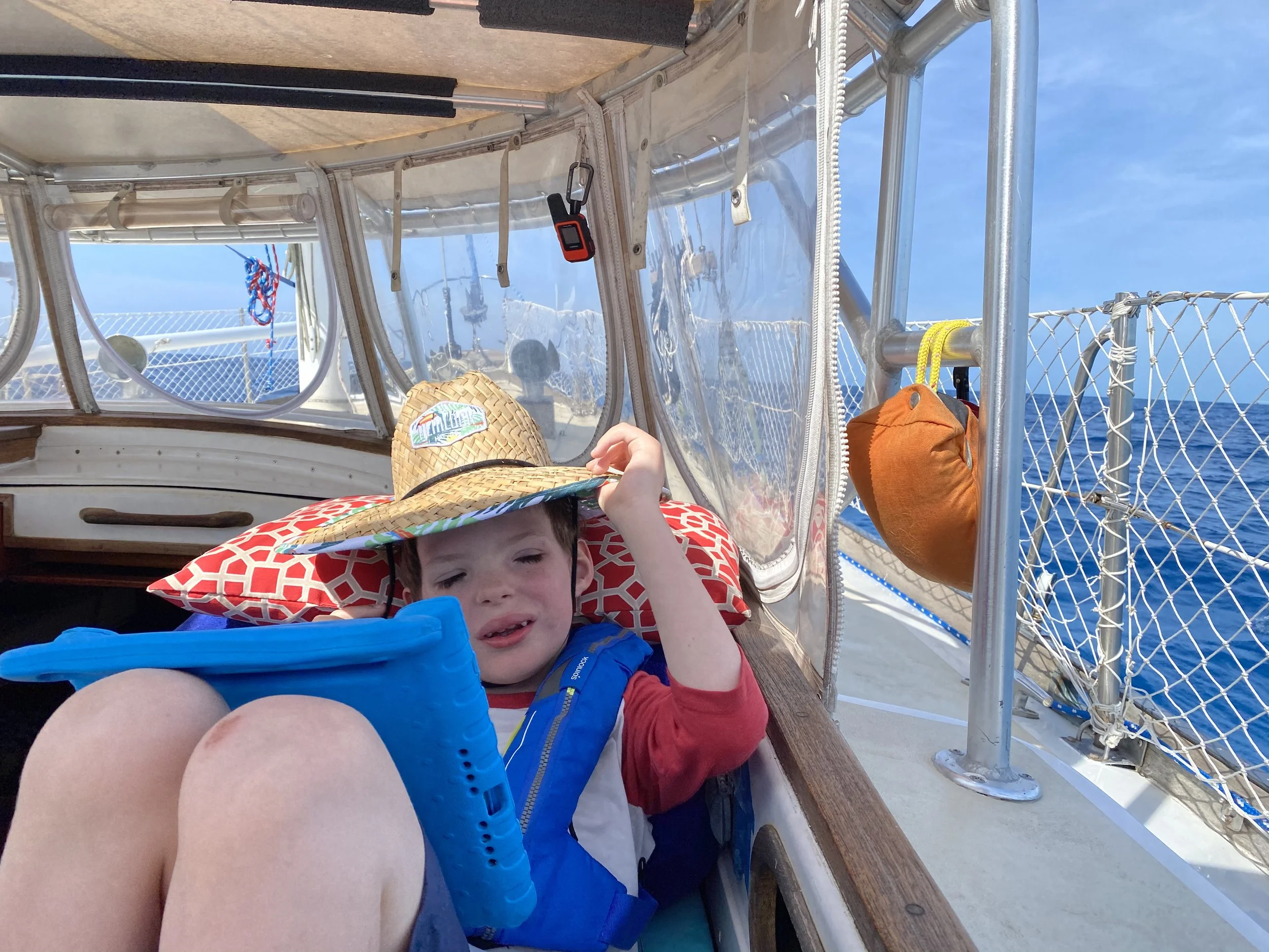 Sailing easy, knowing that we are still in touch via Garmin inReach Satellite technology - even in open water! (That’s the inReach Mini hanging above Eric’s head)